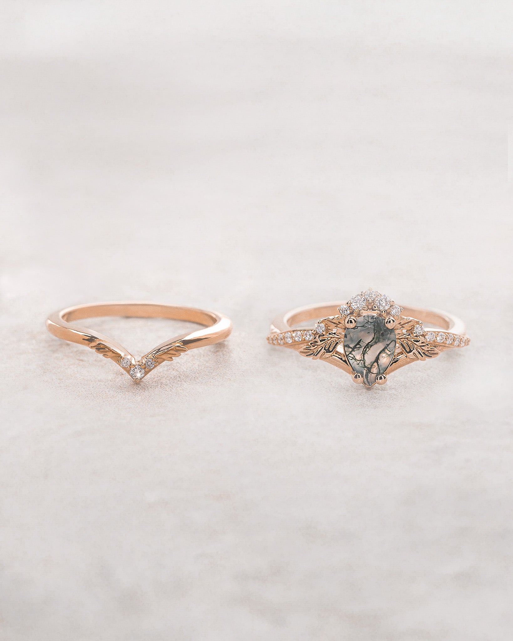 Diamond crown moss agate rose gold proposal ring / Amelia