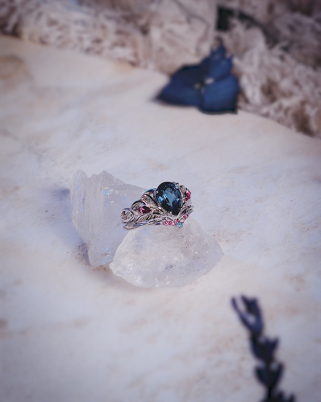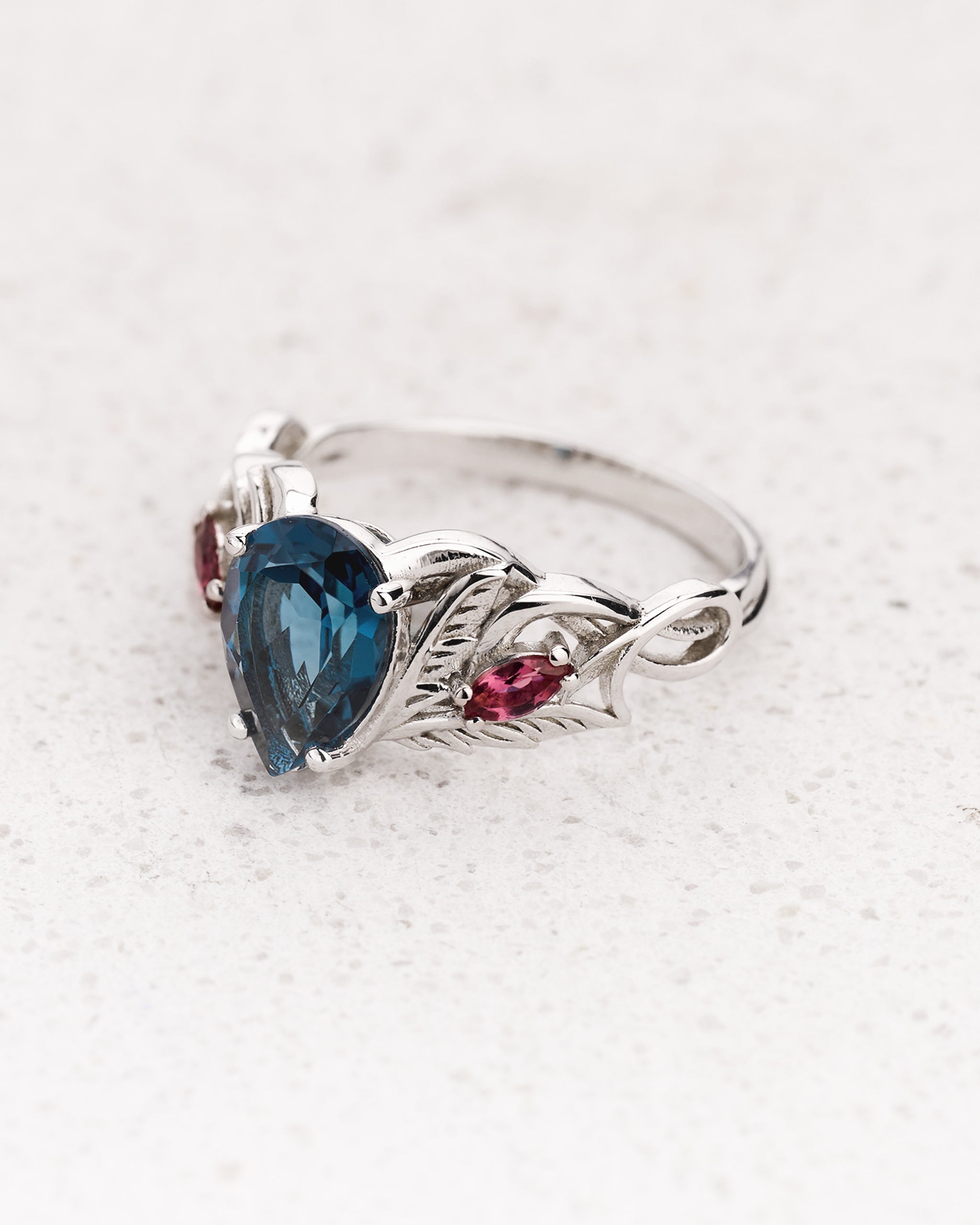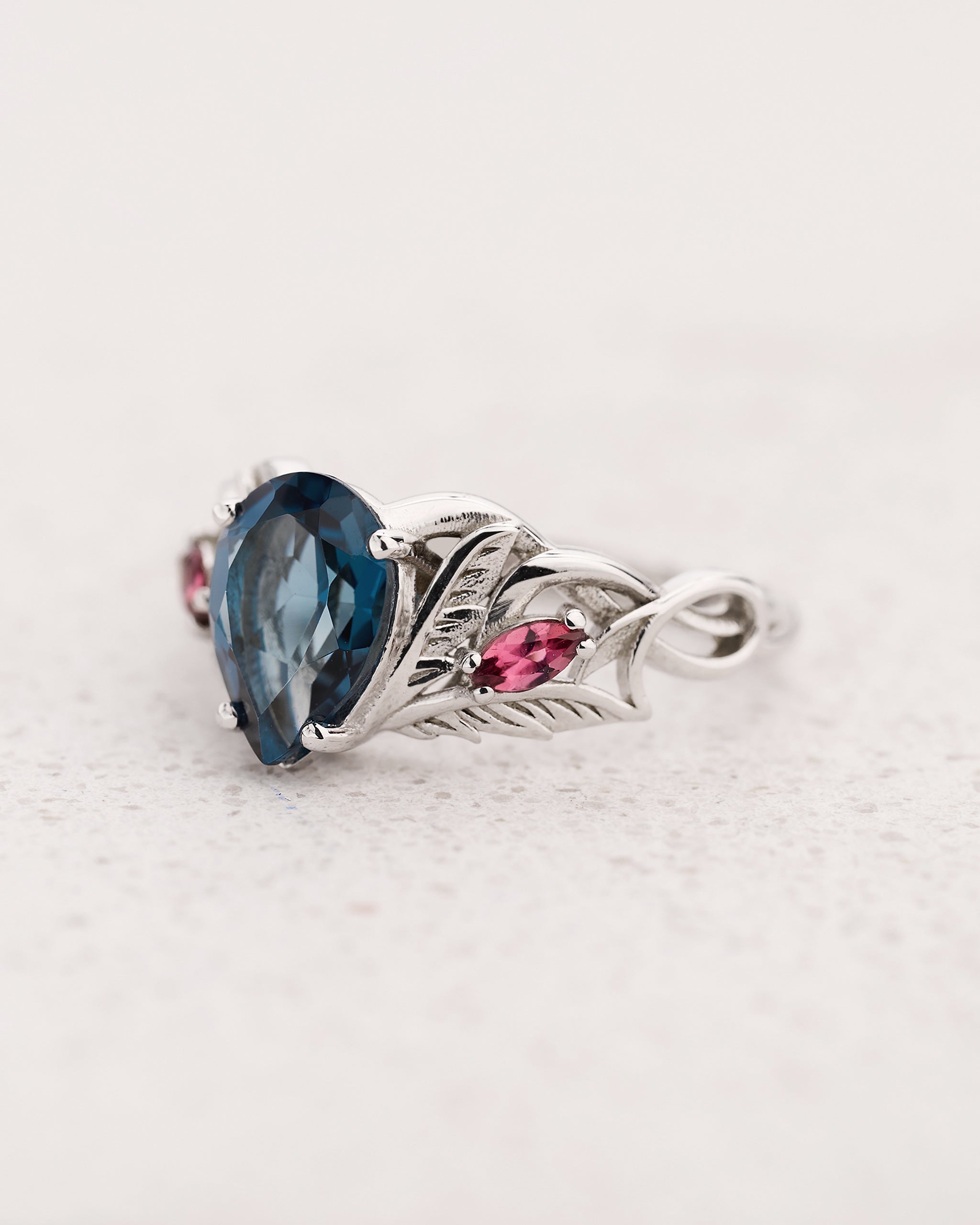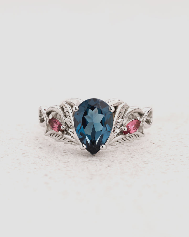 London Blue Topaz Engagement Ring with Accent Pink Tourmalines, Aquamarines & Topazes / Ikar
