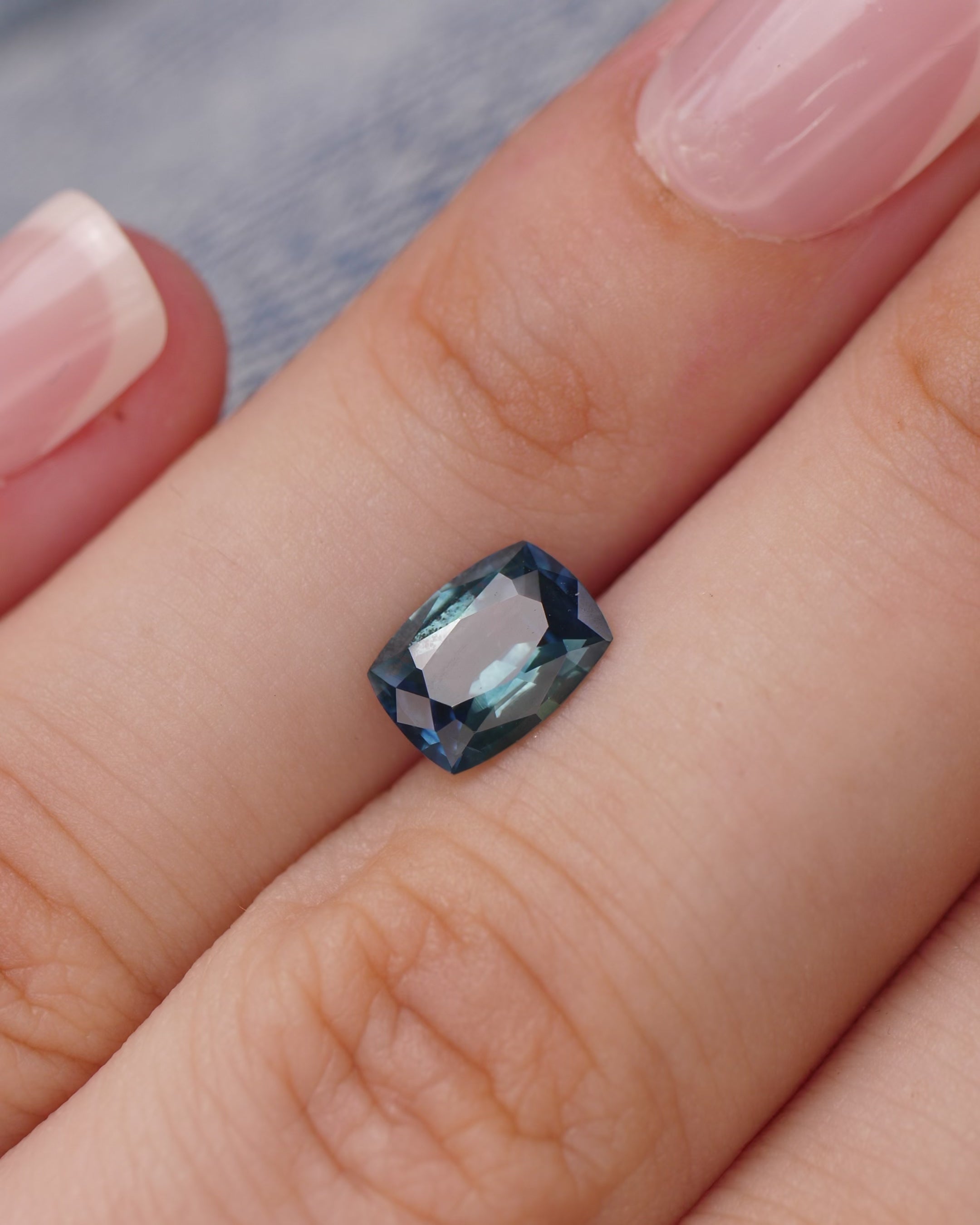 Please note that teal sapphires may exhibit color change under different lighting conditions. The photo shown was taken under electric light. Upon request, we can also provide an additional video to better demonstrate the stone’s appearance.