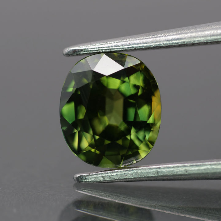 Sapphire | natural, green color, cushion-cut, *7x6mm, *1.5ct, Thailand