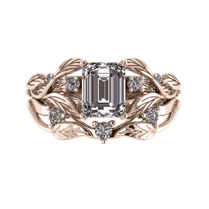 Clematis | custom bridal ring set, emerald-cut 8x6 mm - Eden Garden Jewelry™
