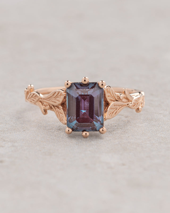 READY TO SHIP: Freesia in 14K rose gold, emerald cut alexandrite 8x6mm, AVAILABLE RING SIZES: 5.5 - 8.5 US