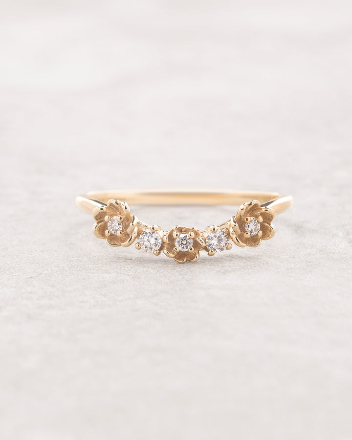 Curved flower wedding band, diamond ring