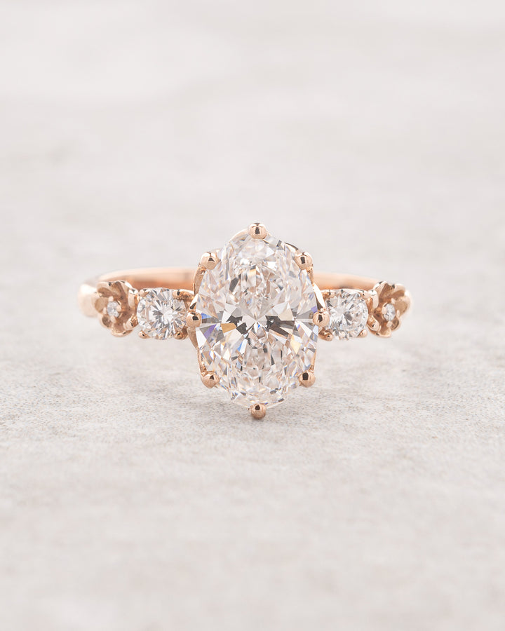 READY TO SHIP: Fiorella engagement ring, 14K rose gold, lab diamond, oval cut 10x7 mm, accent lab diamonds, AVAILABLE RING SIZES: 5.5 - 8.5 US