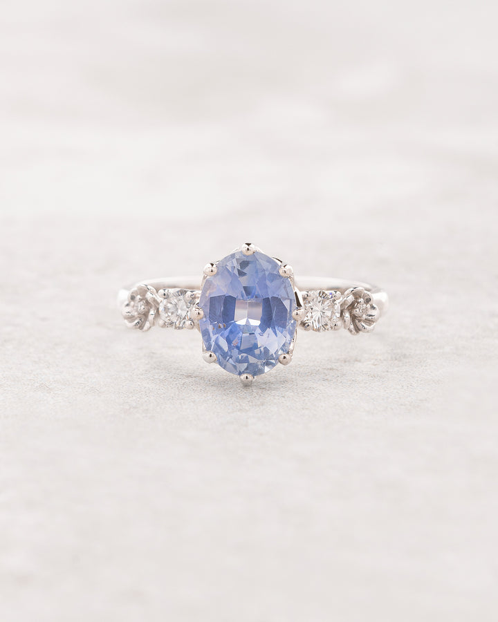 Natural light blue sapphire engagement ring with tiny flowers / Fiorella