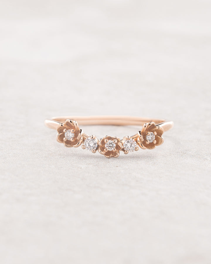 Three flowers ring, curved wedding band with diamonds - Eden Garden Jewelry™