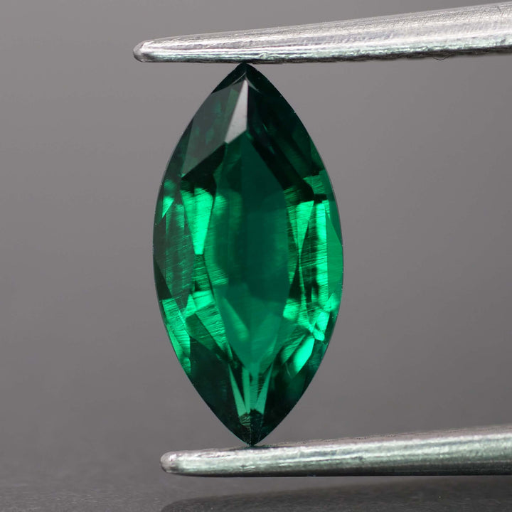 Emerald | Lab-Created Hydrothermal, marquise-cut, 10x5mm, 0.9ct