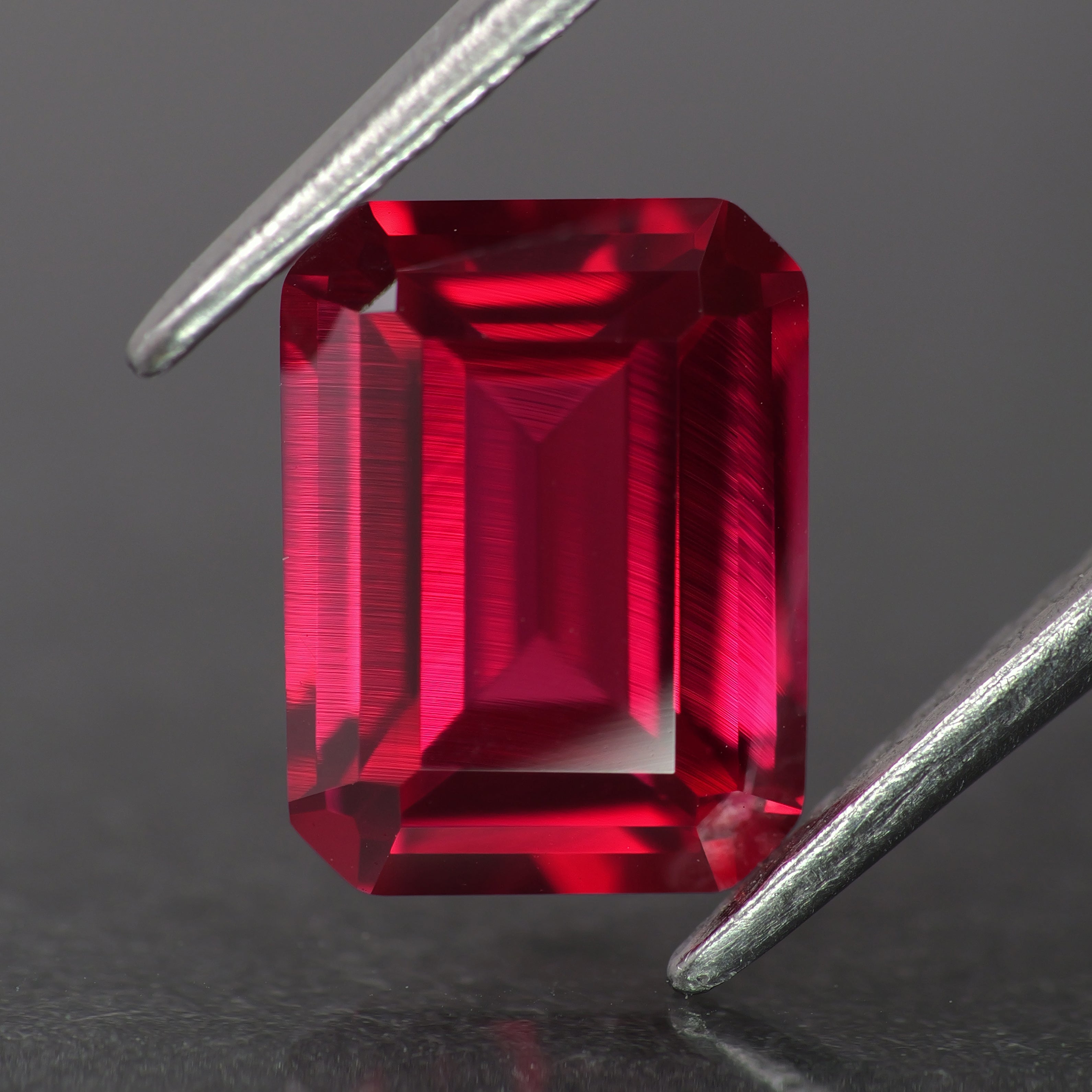 Ruby | red color, lab created, emerald-cut, 8x6mm, 1.9ct