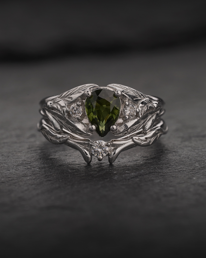 Bridal Set with Green Sapphire Engagement Ring & Matching Band / Wisteria