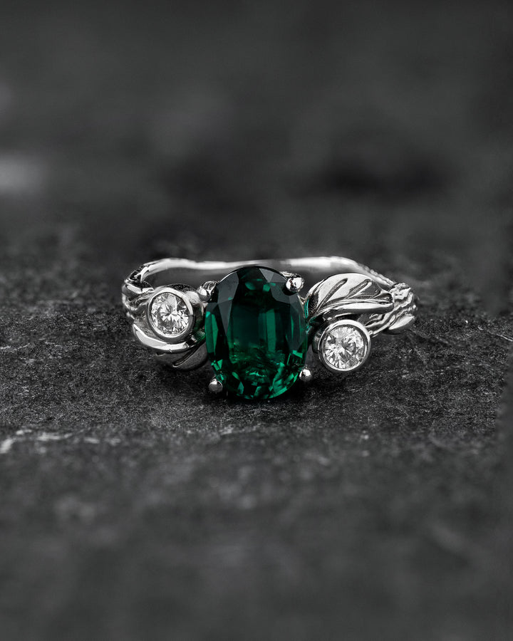 Forest-inspired Engagement Ring with Oval (Lab-grown) Emerald / Arius - Eden Garden Jewelry™