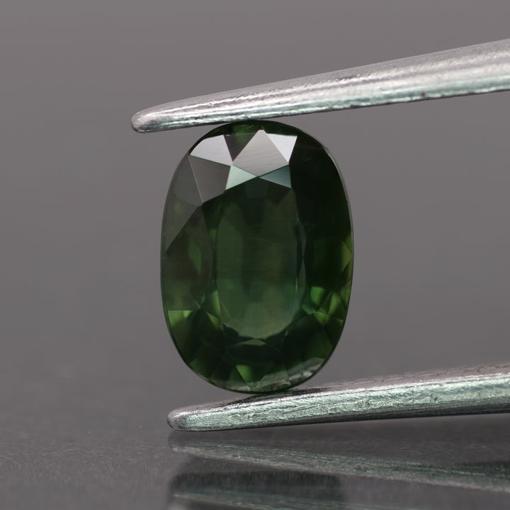 Sapphire | natural, deep green color, oval-cut, 7x5mm, 1ct, Madagascar