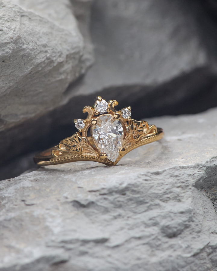 READY TO SHIP: Ariadne engagement ring, 14K yellow gold, pear-cut lab diamond 7x5 mm, accent lab diamonds, RING SIZE: 5.5 - 8.5 US
