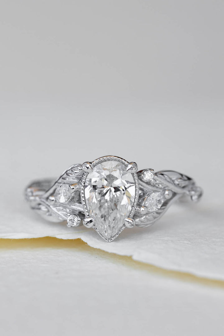 READY TO SHIP: Patricia ring in 14K white gold, lab grown diamond pear cut 8x6 mm, accent lab grown diamonds, AVAILABLE RING SIZES: 6-8US - Eden Garden Jewelry™