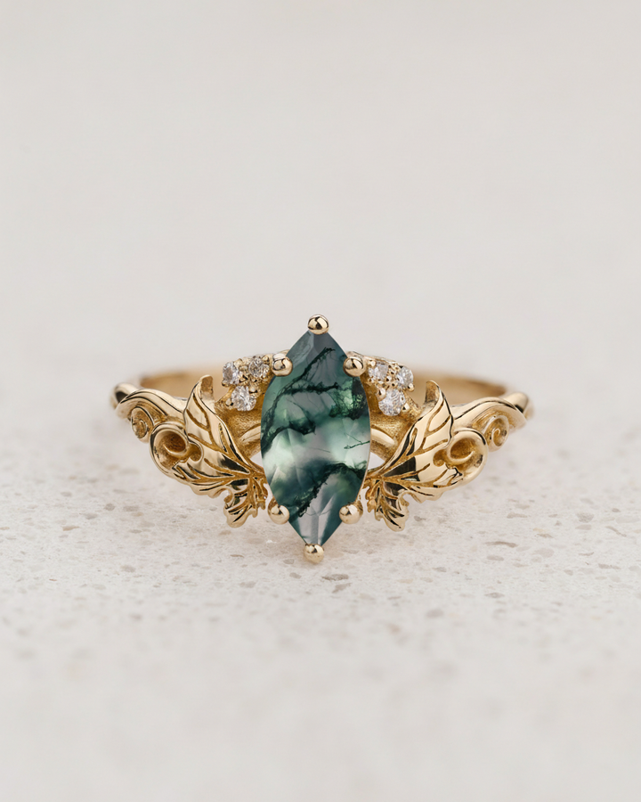 Engagement Ring with Marquise-cut Moss Agate / Vineyard