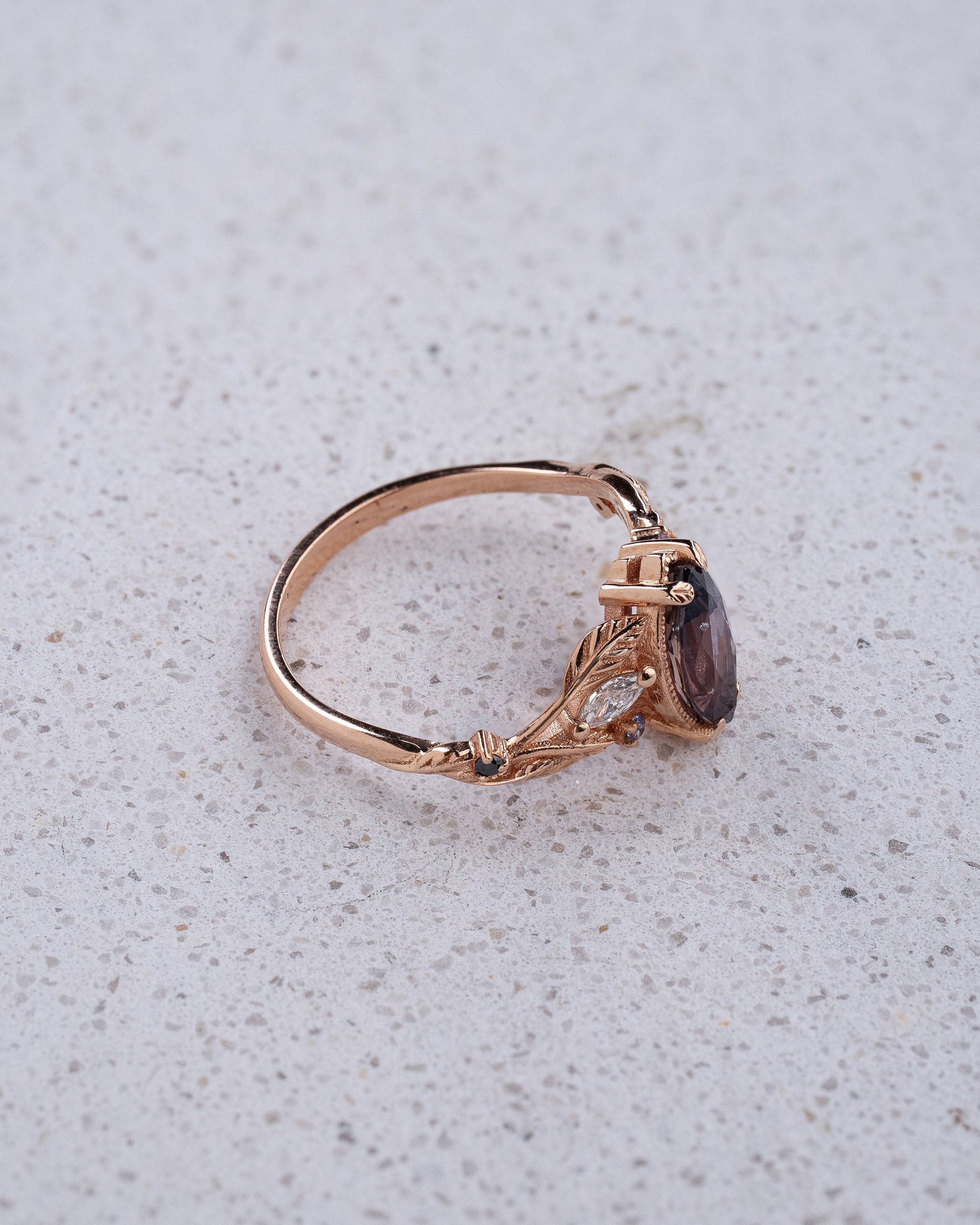 READY TO SHIP: One-of-a-kind Patricia ring with purplish gray sapphire, 14K rose gold, AVAILABLE RING SIZES: 5.5 - 8.5 US