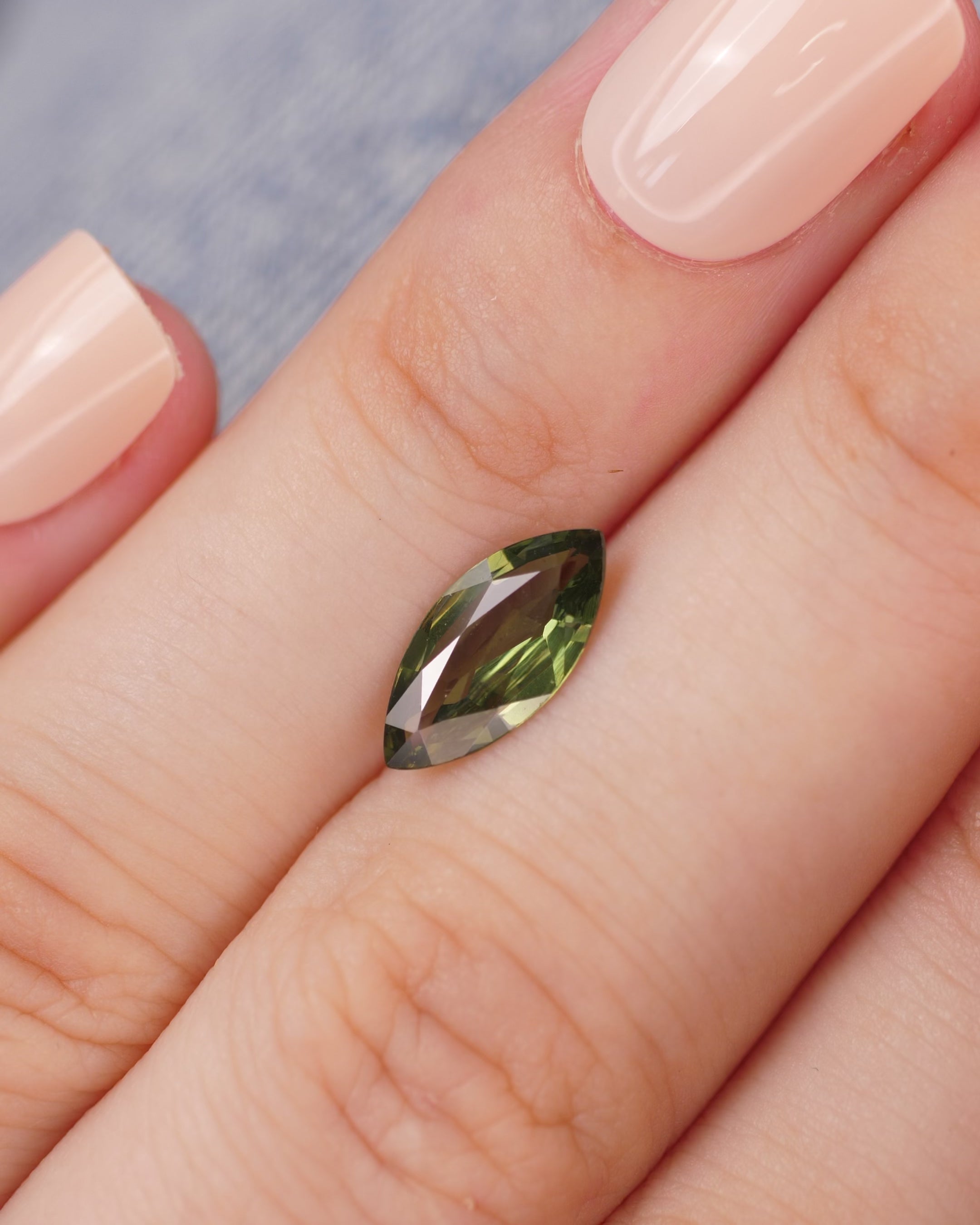 Sapphire | natural, green color, marquise-cut, *11.5x5.5mm, 1.3ct, Thailand