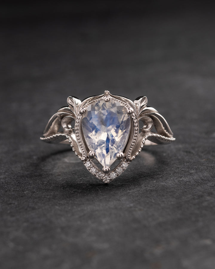 READY TO SHIP: Lida engagement ring with magical moonstone, 14K white gold, RING SIZES: 5.5 - 8.5 US - Eden Garden Jewelry™