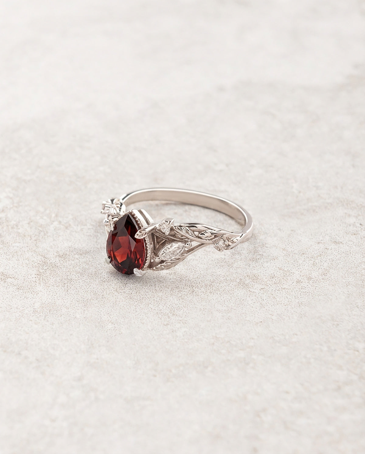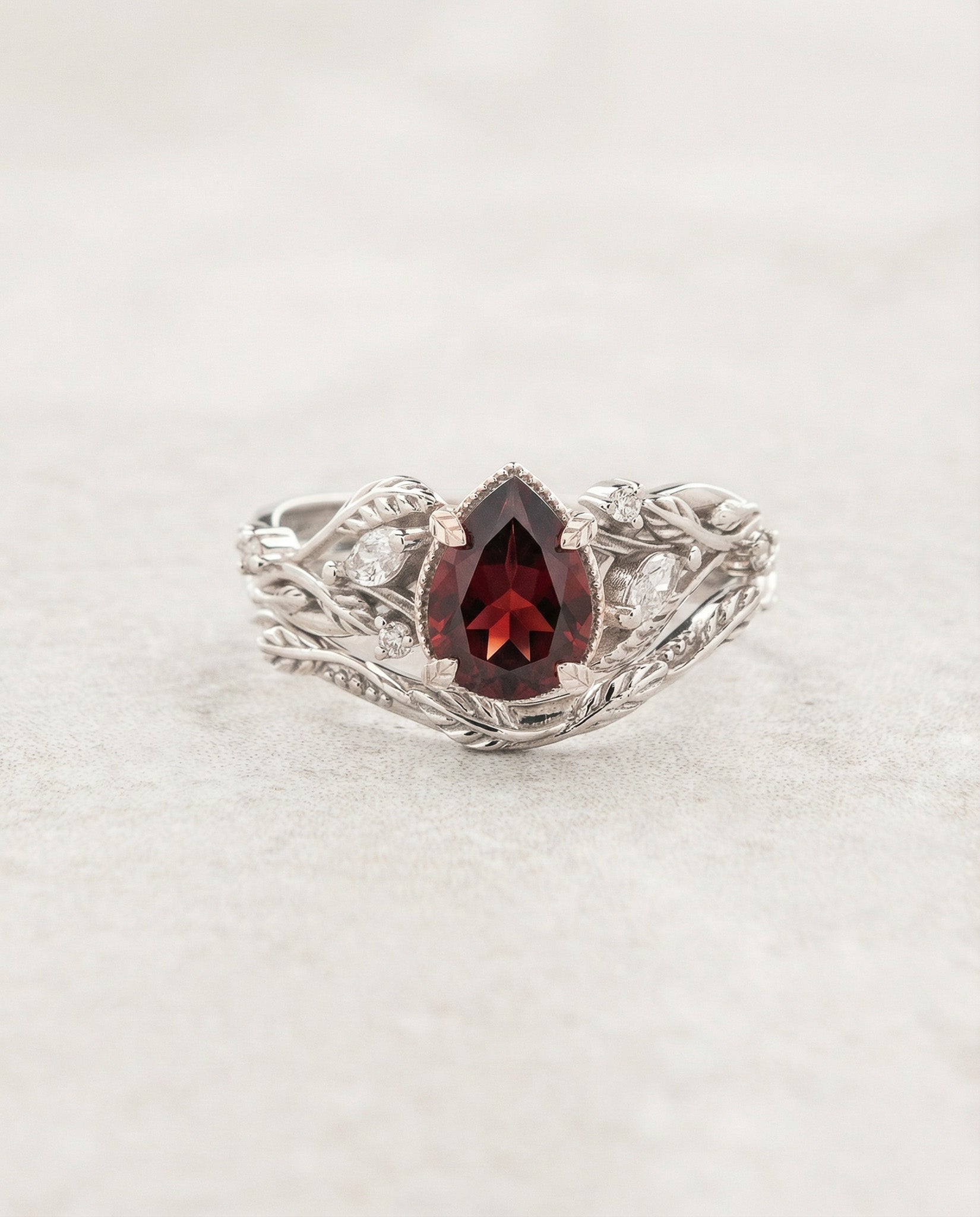 Red Garnet Bridal Set with Accent Diamonds in Leafy Design / Patricia