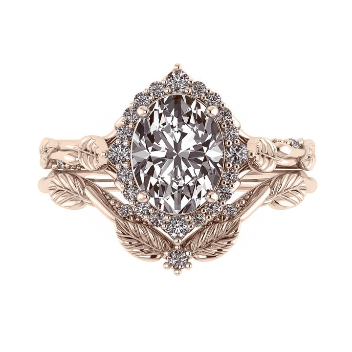 Florentina | custom bridal ring set with oval cut gemstone 9x7 mm - Eden Garden Jewelry™