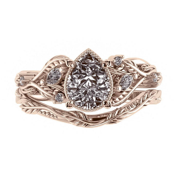 Patricia asymmetric | custom bridal ring set for pear cut gemstone 8x6 mm