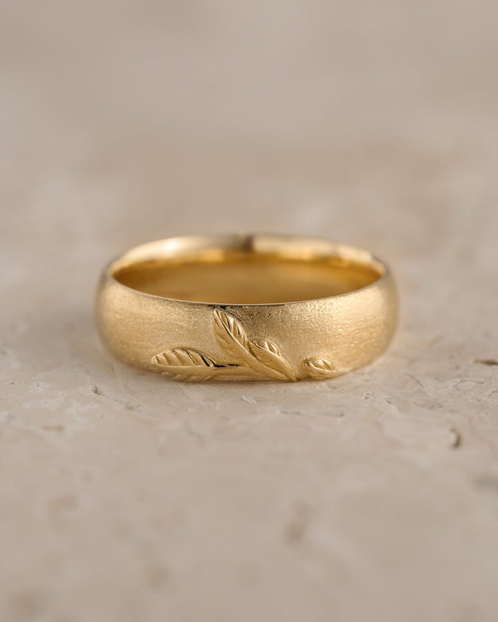 READY TO SHIP: Unisex Wedding Band with Leaf Motif, 14k yellow gold, AVAILABLE RING SIZE 10 US