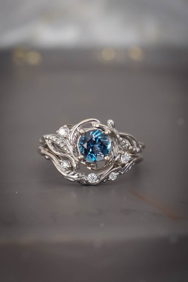 London blue topaz engagement ring set, gold bridal ring set / Undina - Eden Garden Jewelry™