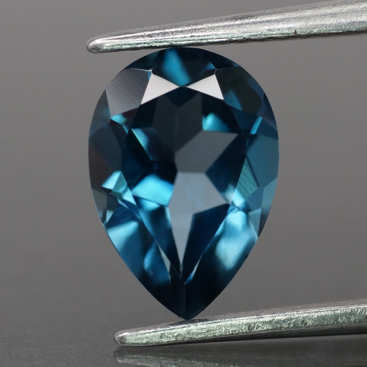 Topaz | natural, London blue color, pear-cut, 10x7mm, 2ct
