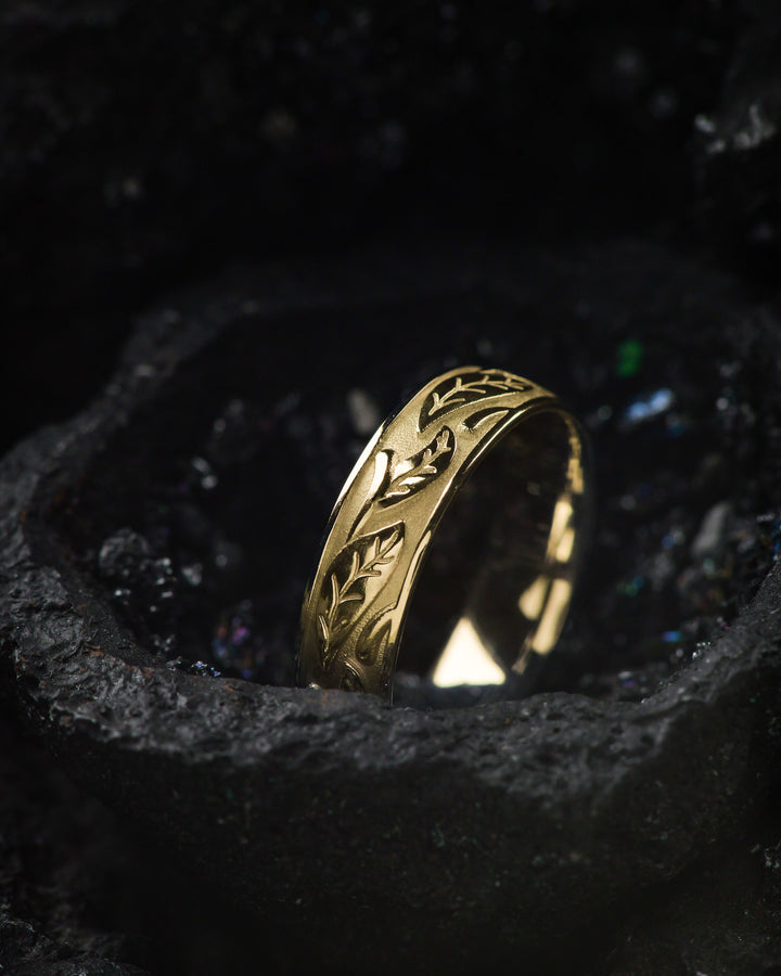 Nature themed wedding ring is comfortable for everyday wear. Will be made in requested size and desirable gold colour.