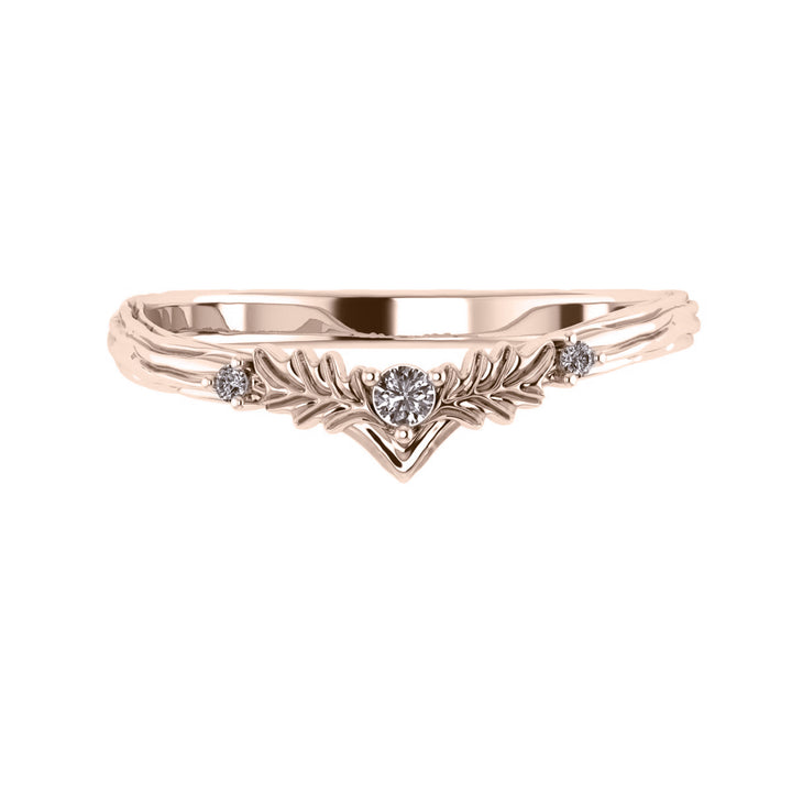 This nature wedding band is a dainty jewelry piece but sturdy enough for everyday wear. It features minimalistic leaf design with tiny gemstones.