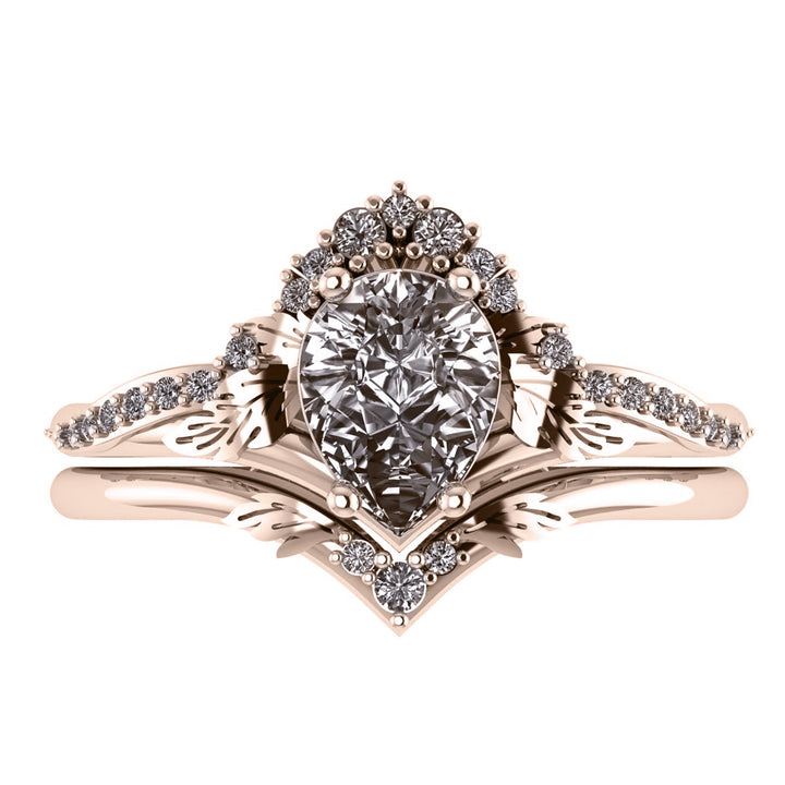 Amelia | bridal ring set settings for pear cut gemstone, 8x6 mm central