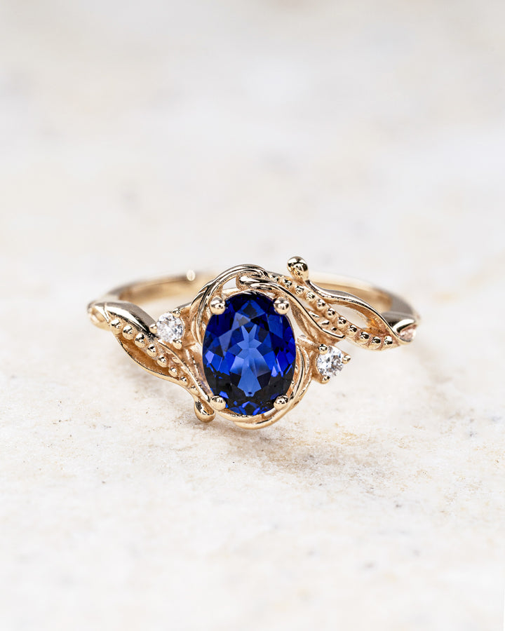 Lab-grown blue sapphire engagement ring with accent diamonds / Undina