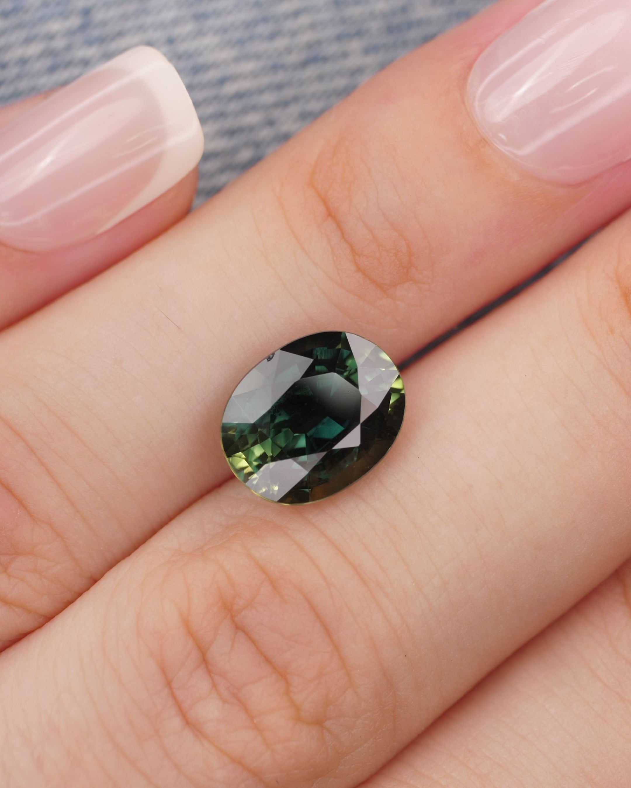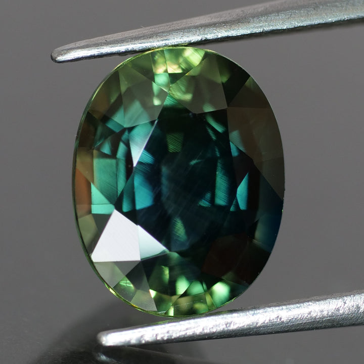 Sapphire | natural, teal color/color changing, oval-cut, *10x8mm, 3.9ct