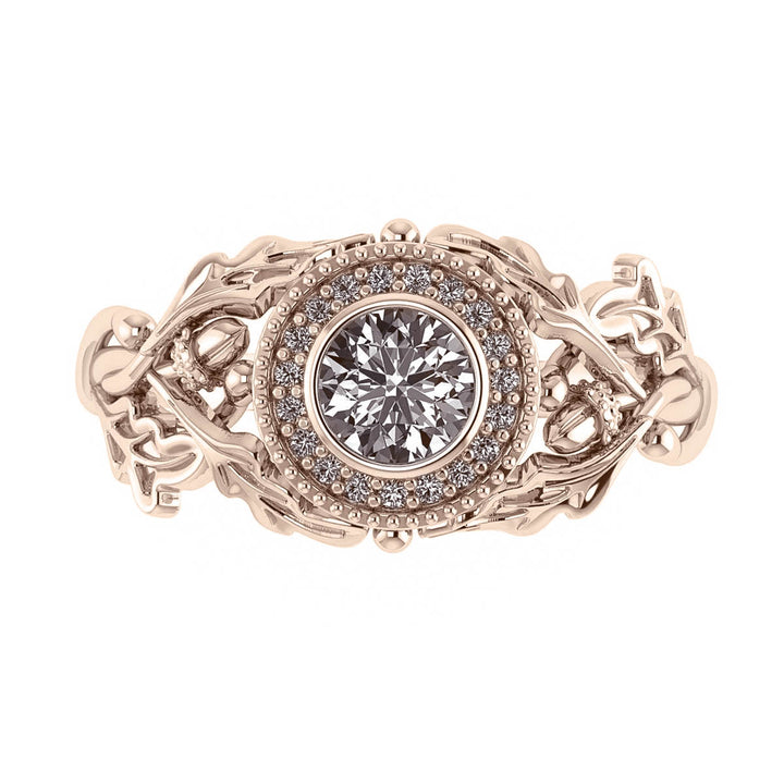 Dair | oak leaves engagement ring setting with halo, round cut 5 mm