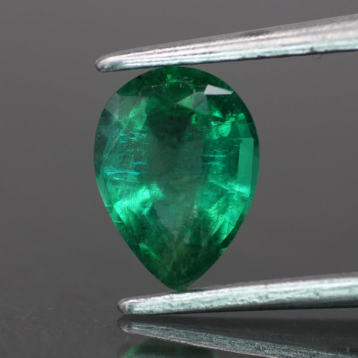 Emerald | IGI certified | natural, deep bluish green color, pear-cut, *8x6mm, *0.8ct, Zambia