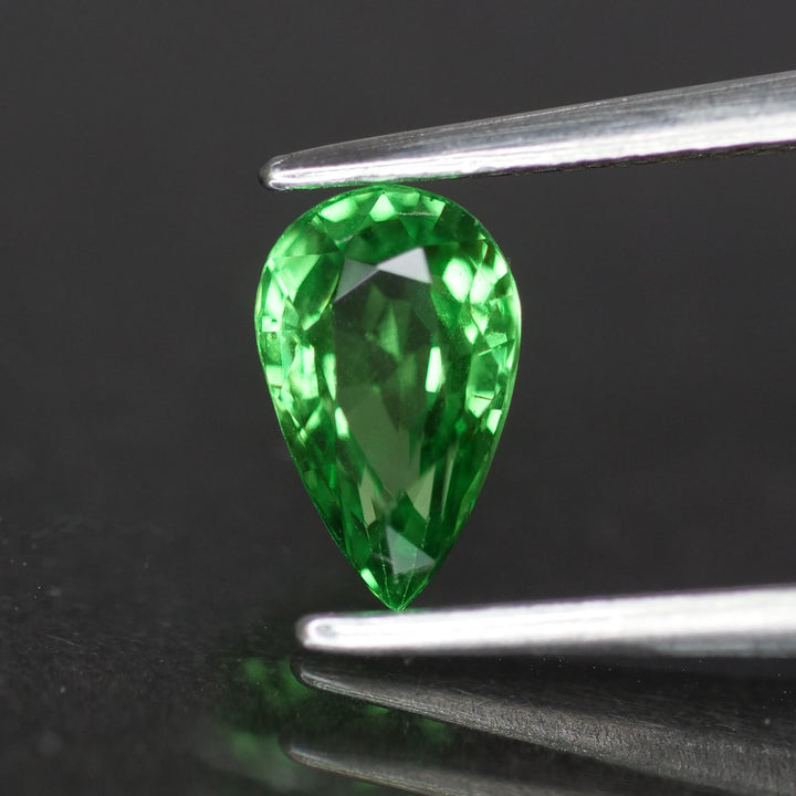 Tsavorite Garnet | shocking green color, pear-cut, 7x4.3mm, 0.75ct, Tanzania