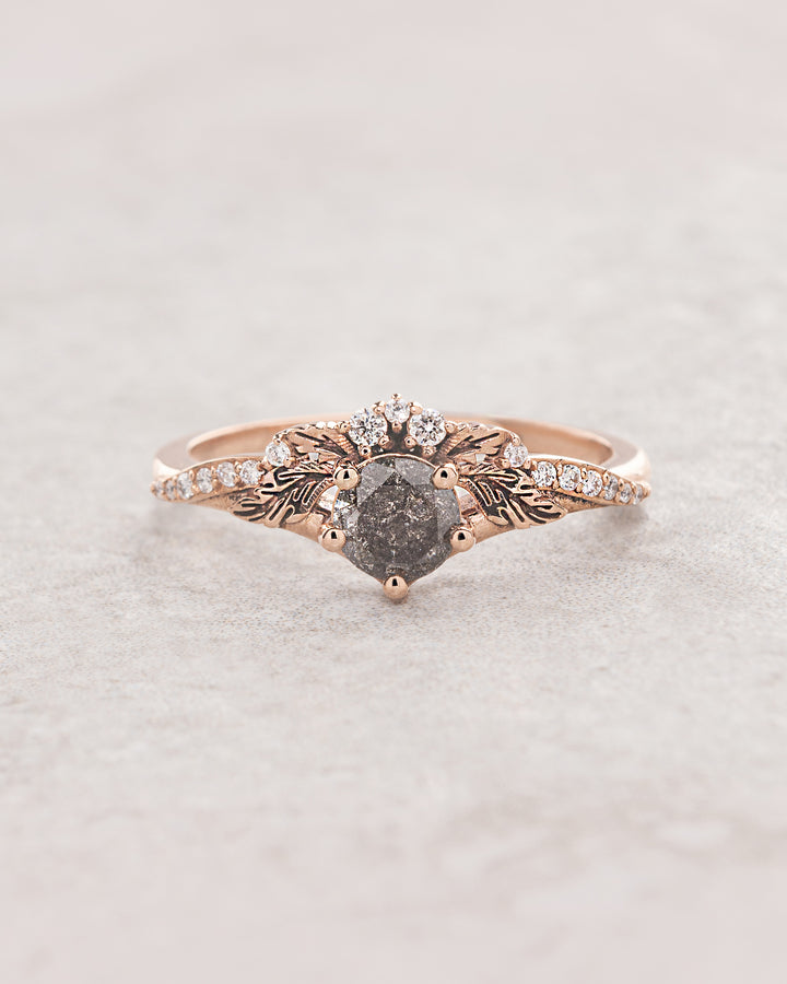 READY TO SHIP: Amelia engagement ring with salt and pepper diamond, 14K rose gold, RING SIZES: 5.5 - 8.5 US - Eden Garden Jewelry™
