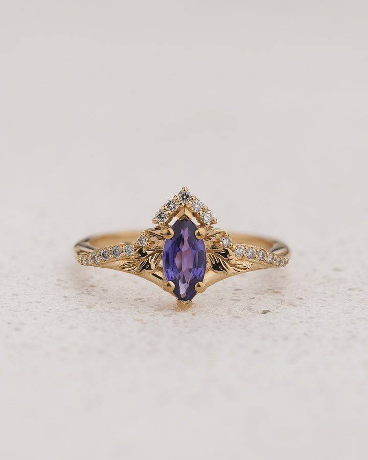 Nature-inspired Engagement Ring with Marquise Purple Sapphire / Amelia