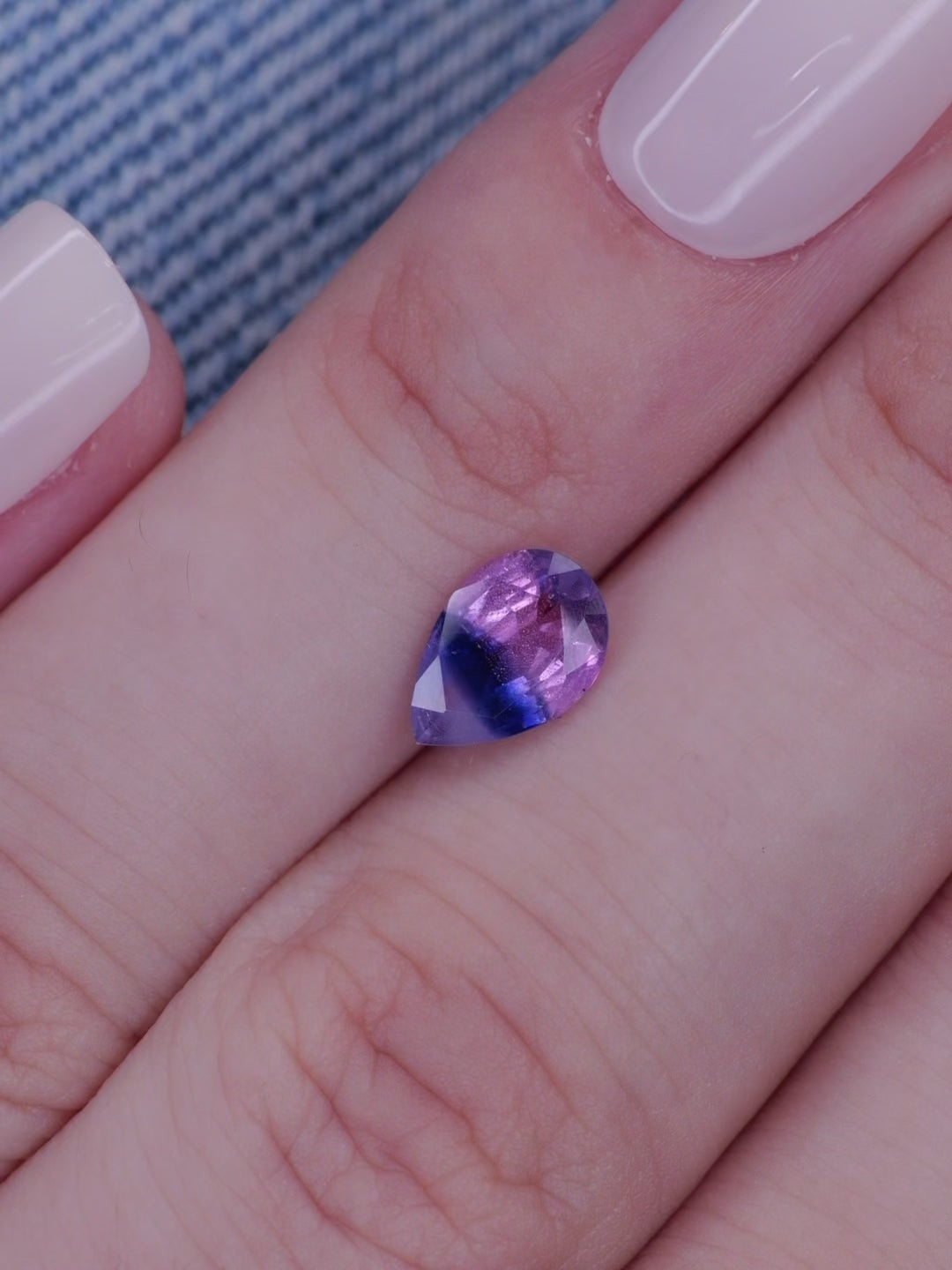Opalescent sapphire | natural, pink & blue color, pear-cut, *8x5.5mm, 1.1ct