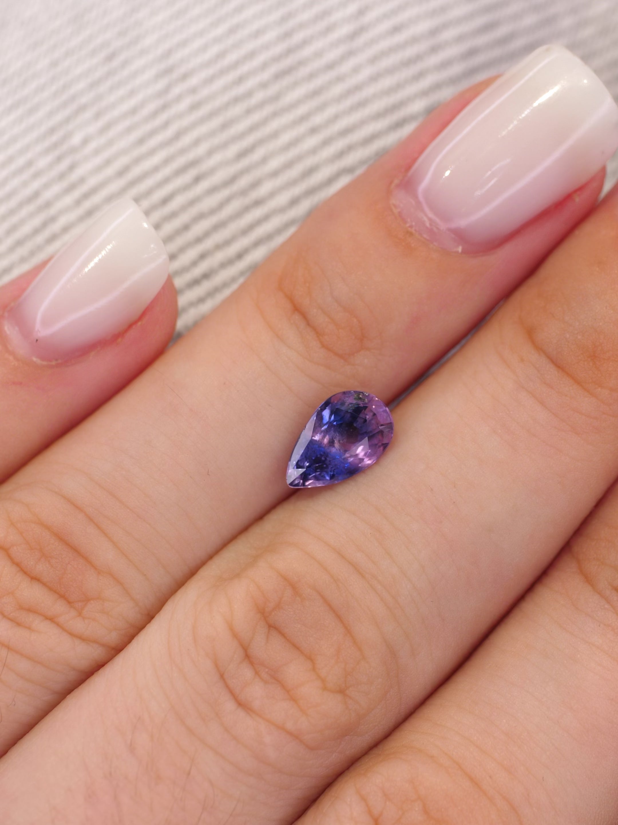 Opalescent sapphire | natural, bi-color: pink & blue, pear-cut, *8.5x5.5mm, 1.3ct