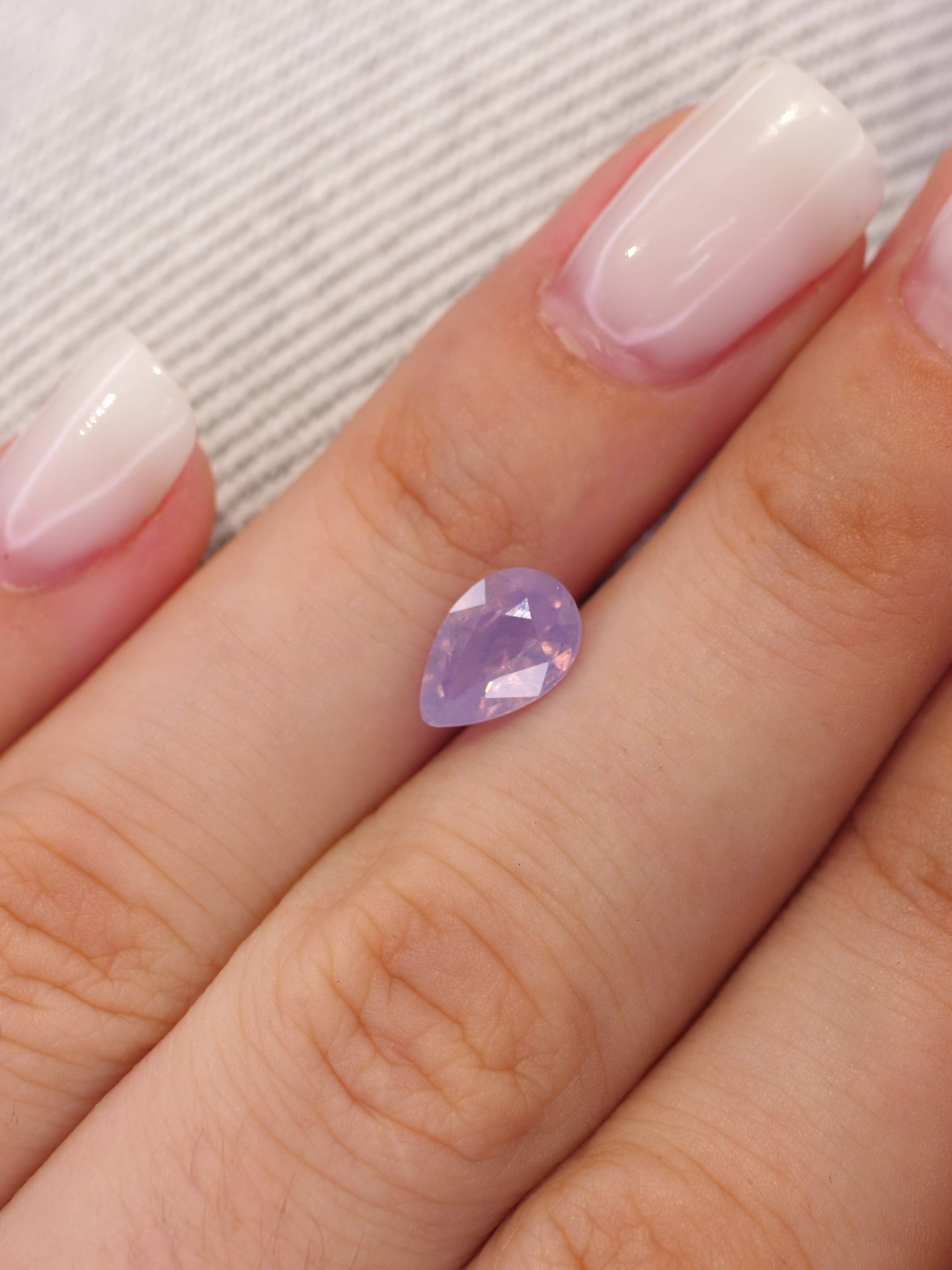 Opalescent sapphire | natural, purplish pink color, pear-cut, *8.5x6mm, 1.2ct