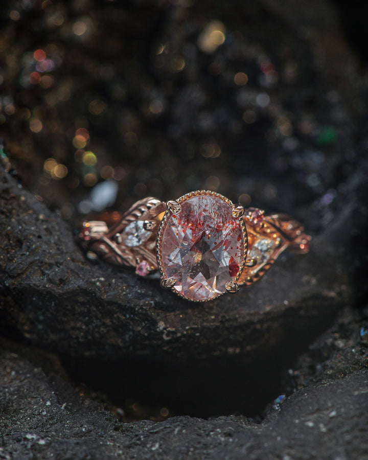 READY TO SHIP: Patricia ring in 14K rose gold, natural melody quartz 9x7 mm, accent lab grown diamonds & natural sapphires, AVAILABLE RING SIZES: 5.5 - 8.5 US