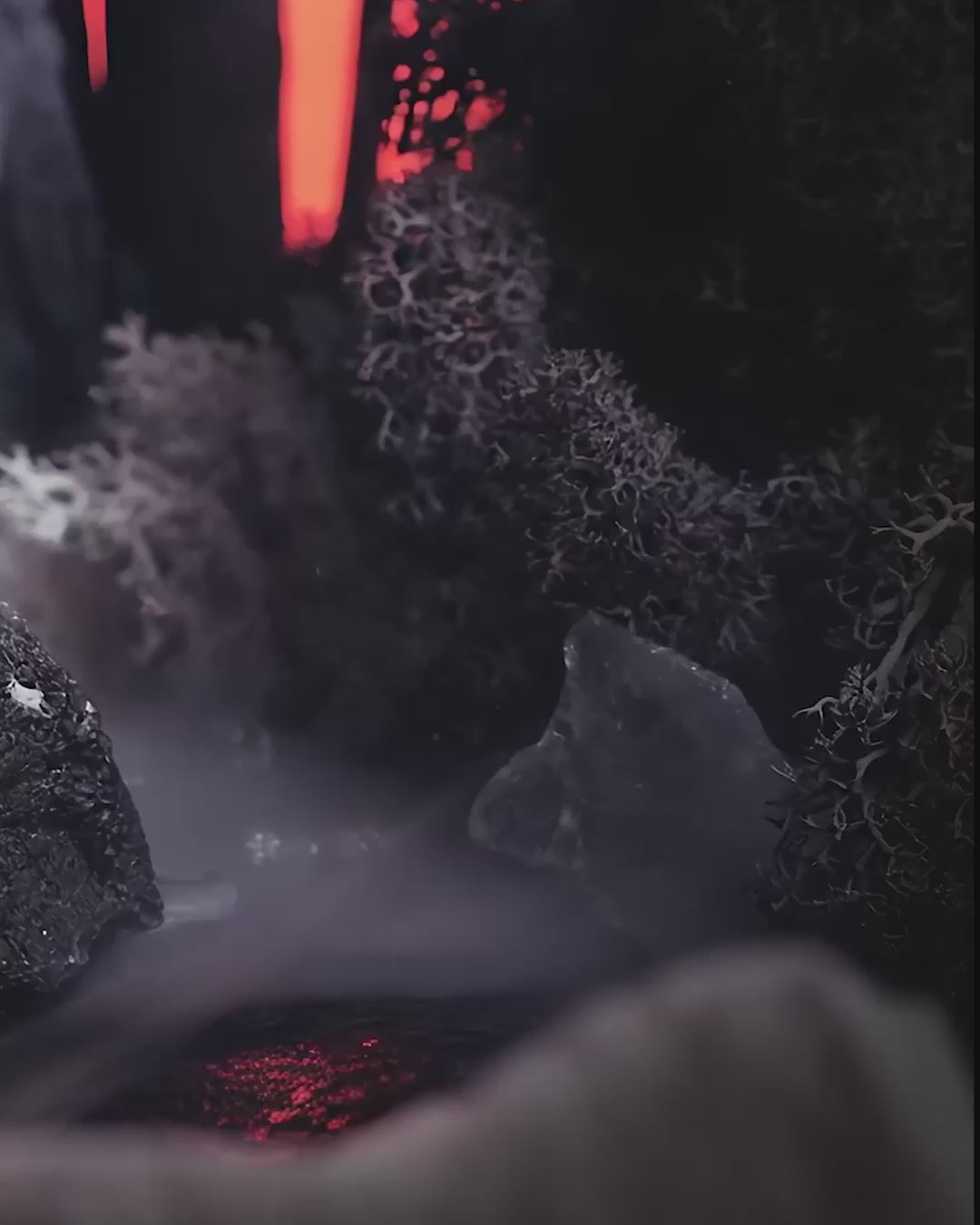 This Wisteria engagement ring features nature inspired design with leaves wrapping around beautiful lab ruby. Adorned with round accent stones, placed between skilfully made leaves.