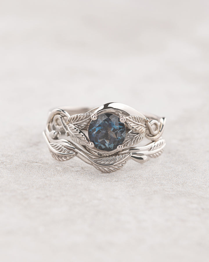 Engagement ring set with London blue topaz and twig wedding band / Azalea