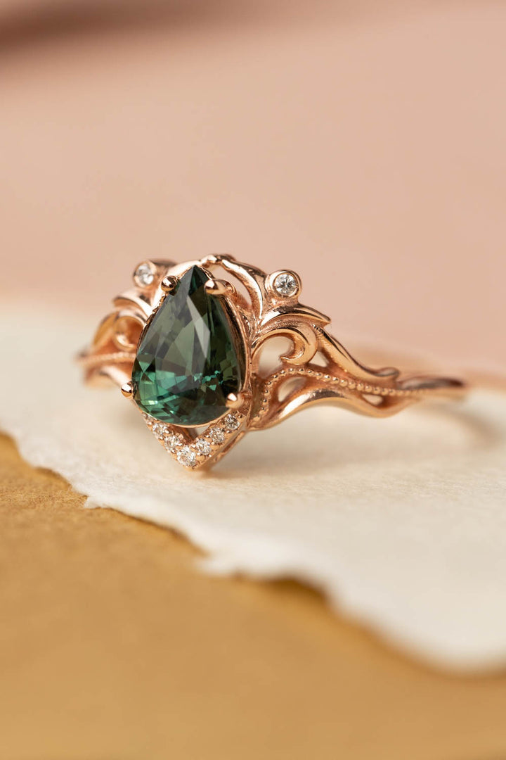 Genuine green sapphire engagement ring, teardrop sapphire and diamonds proposal ring / Lida small