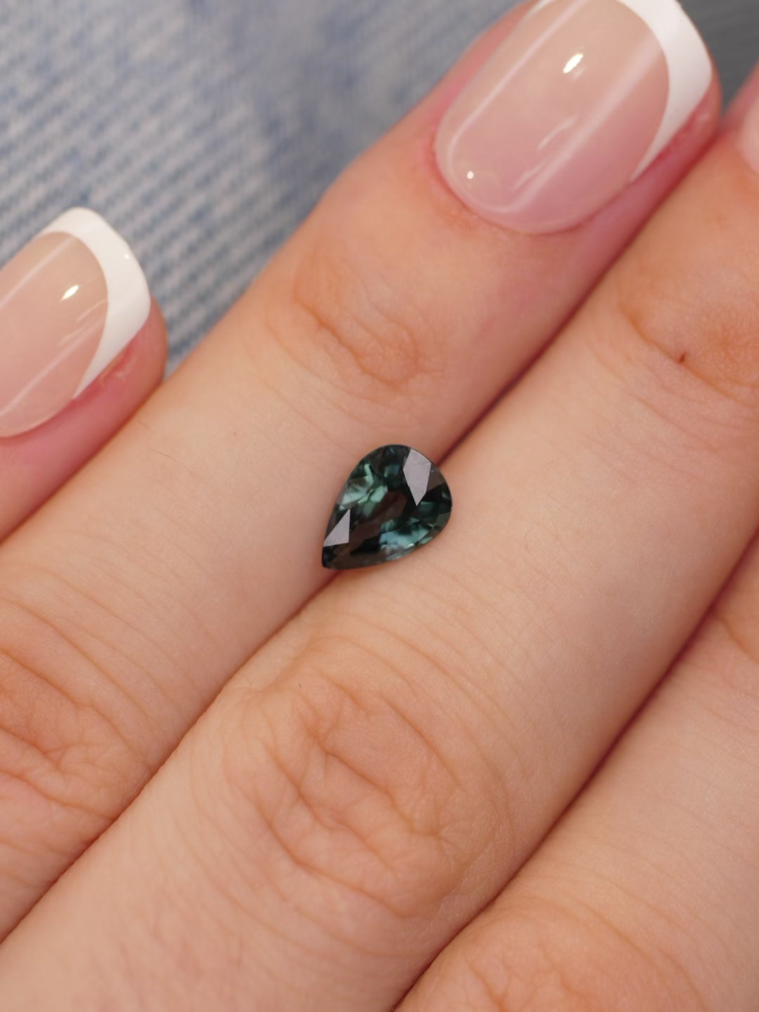 Sapphire | GRA Certified | natural, teal color, pear-cut, 7.5x5mm, 1ct