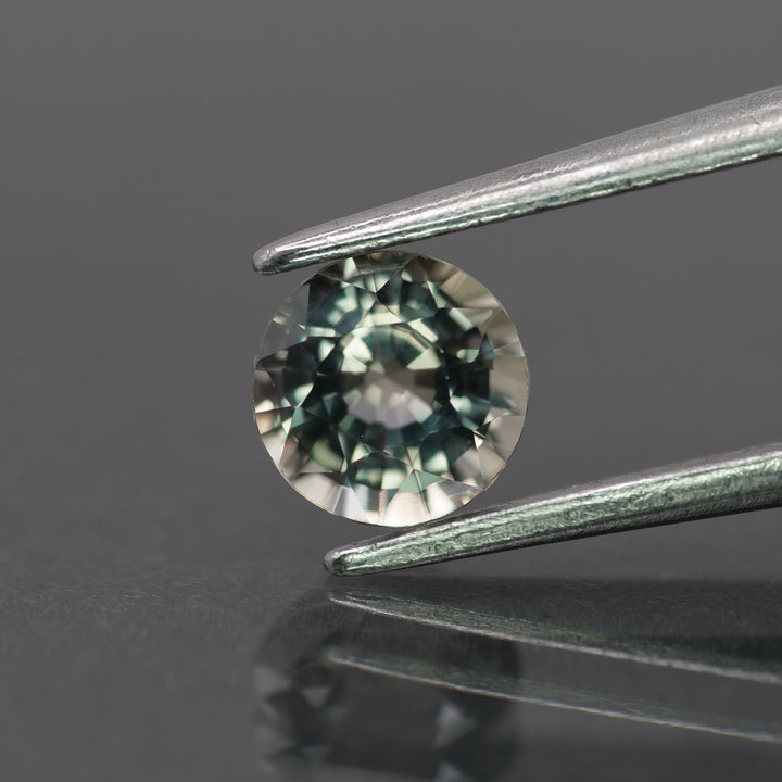Sapphire | natural, light brownish teal color, round-cut, *5.5mm, 0.8ct