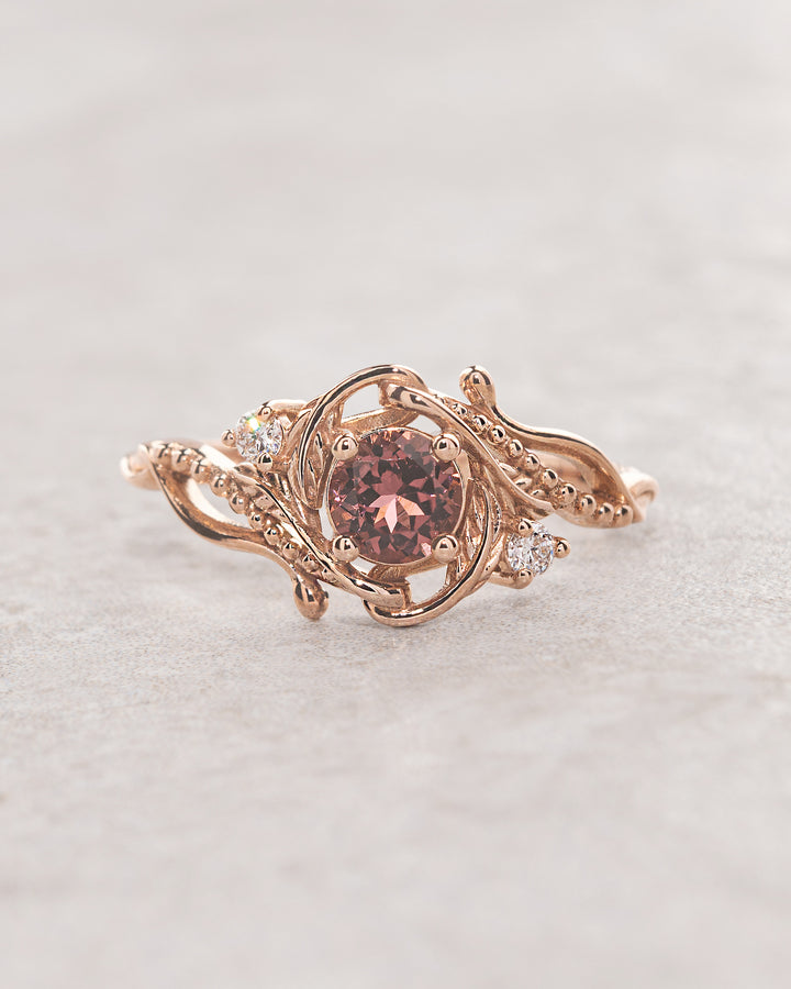 READY TO SHIP: Undina engagement ring with pink tourmaline and diamonds, 14K rose gold, RING SIZES 5.5 - 8.5 US - Eden Garden Jewelry™