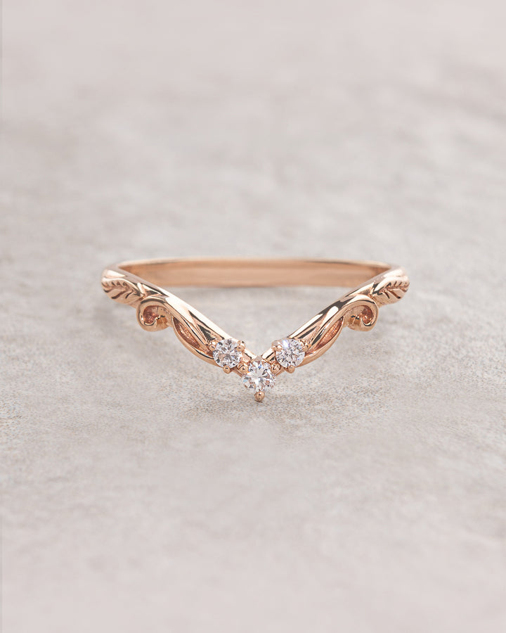 Three diamonds leaf wedding band | matching wedding ring for Adelina - Eden Garden Jewelry™