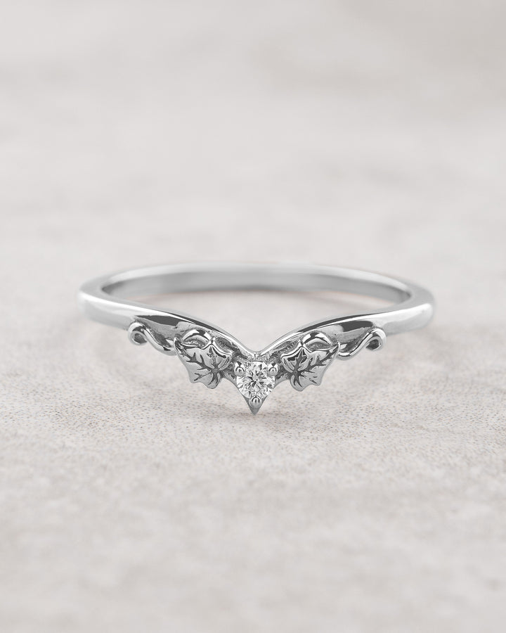 Curved ivy leaves ring with diamond, matching wedding band for Ariadne