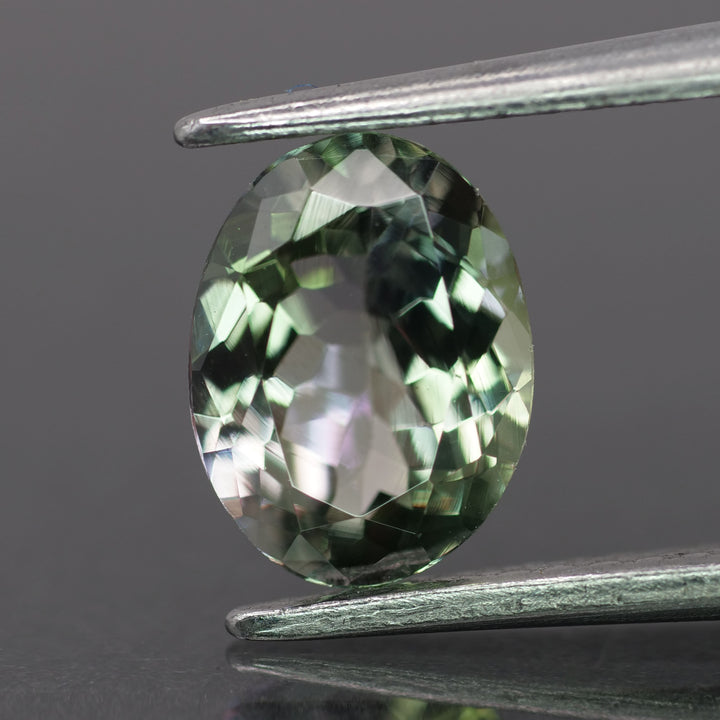 Tanzanite | natural, pinkish green color, oval-cut, 8x6mm, 1.3ct
